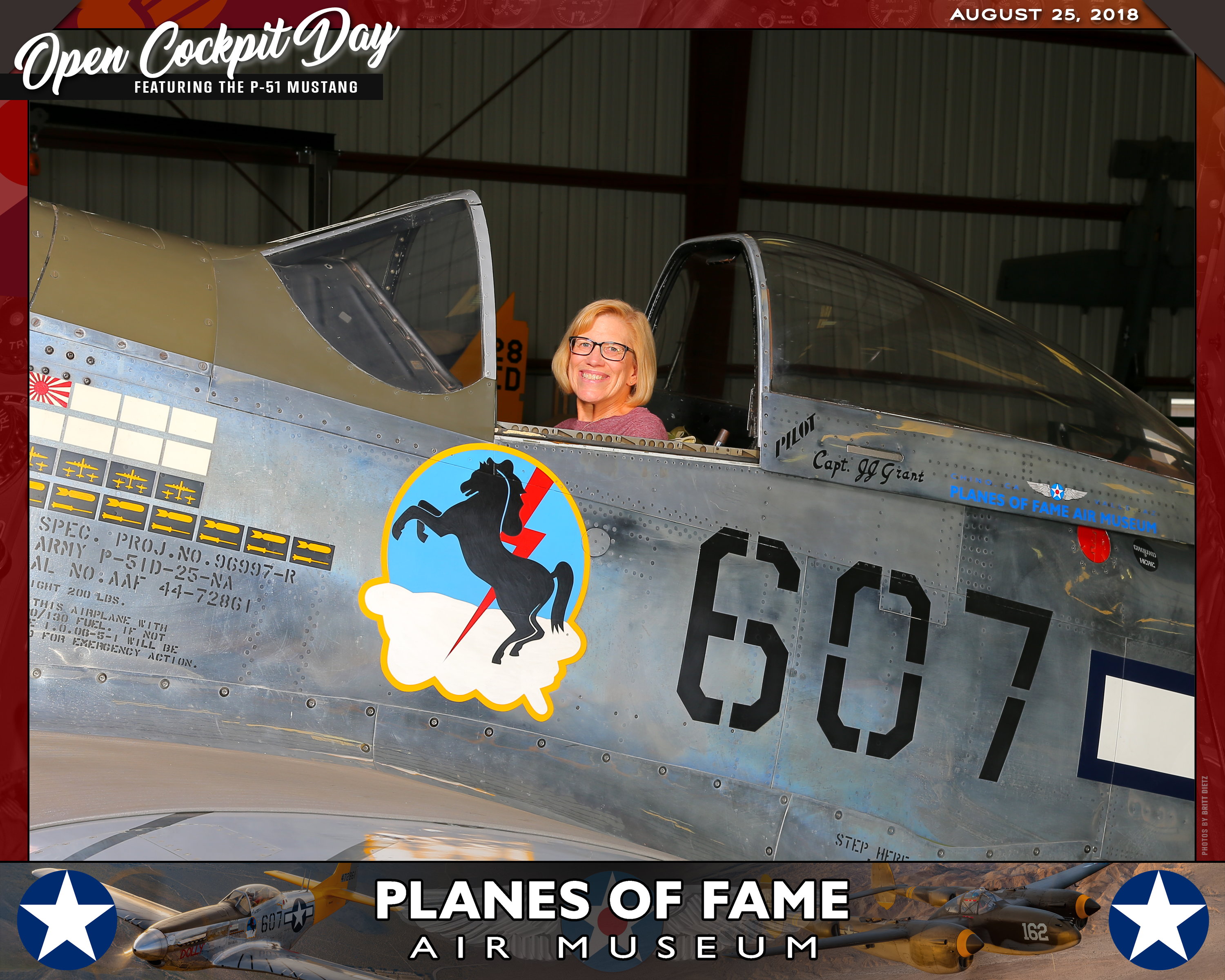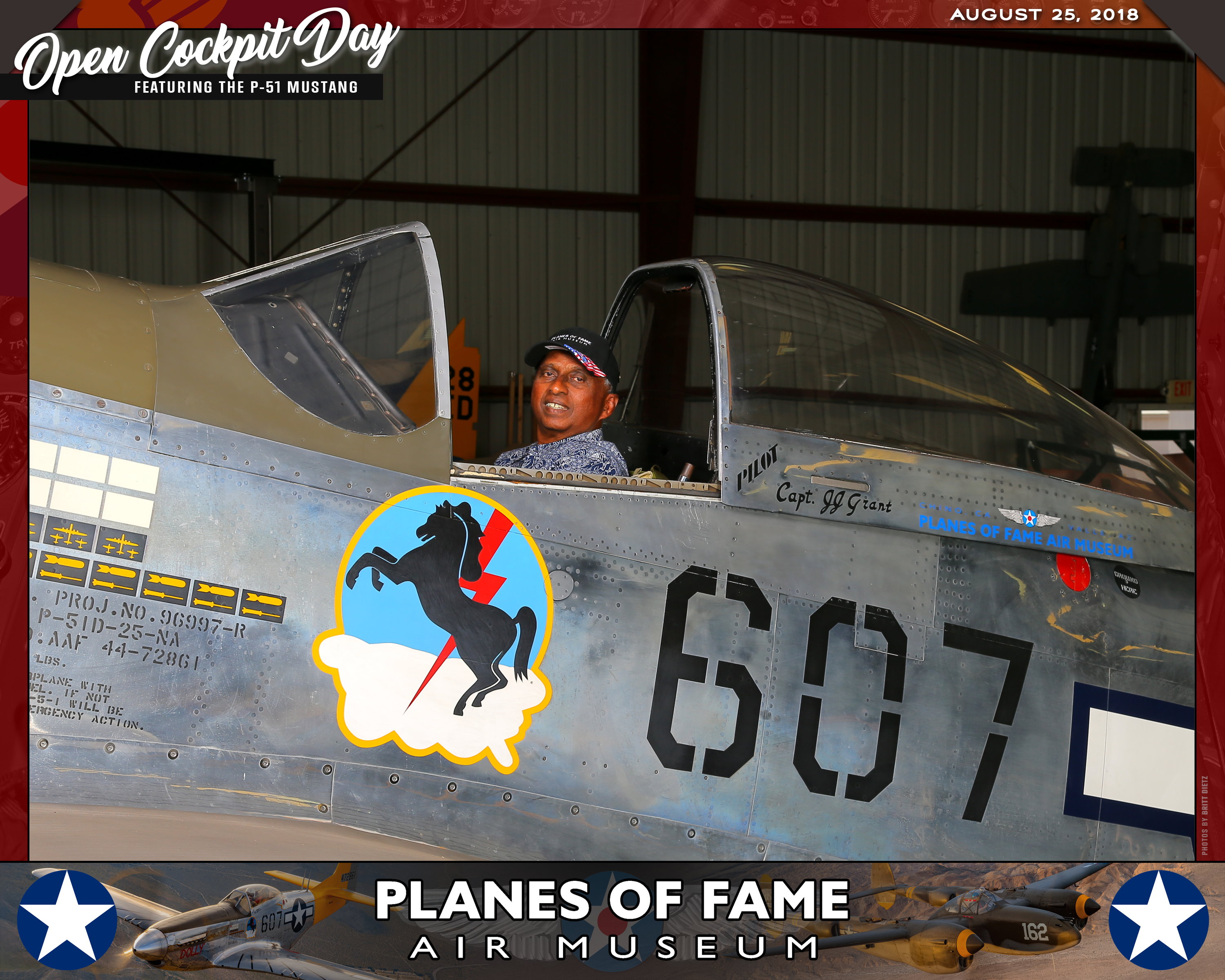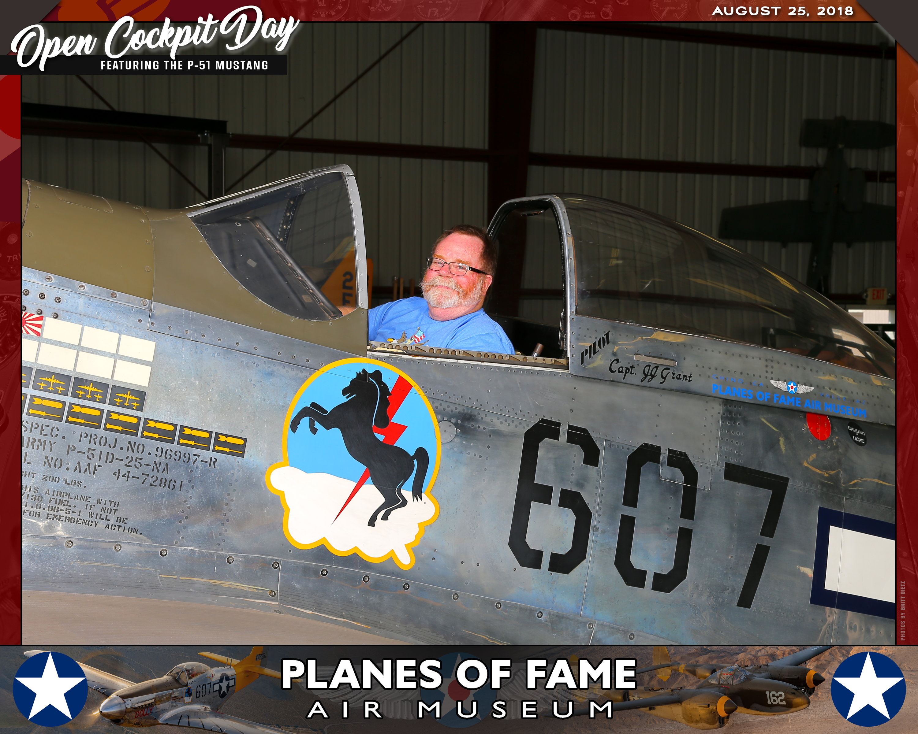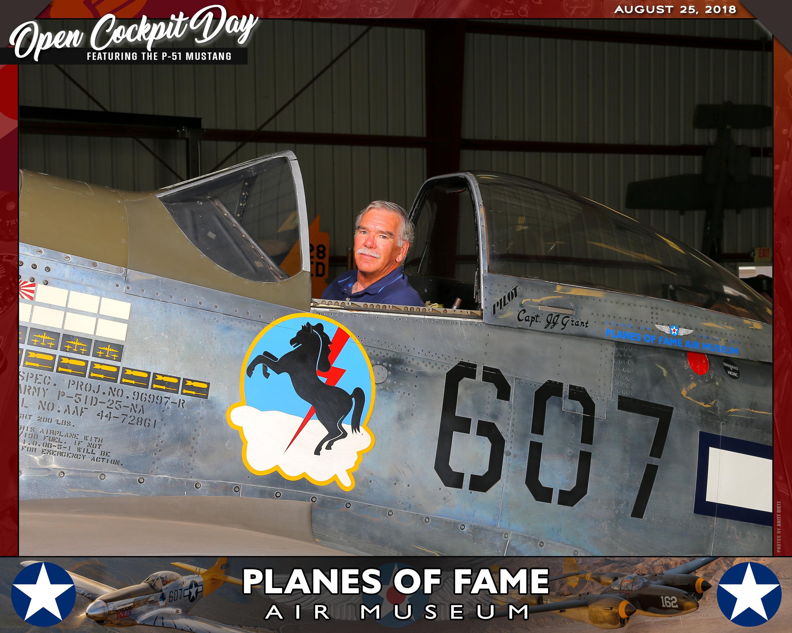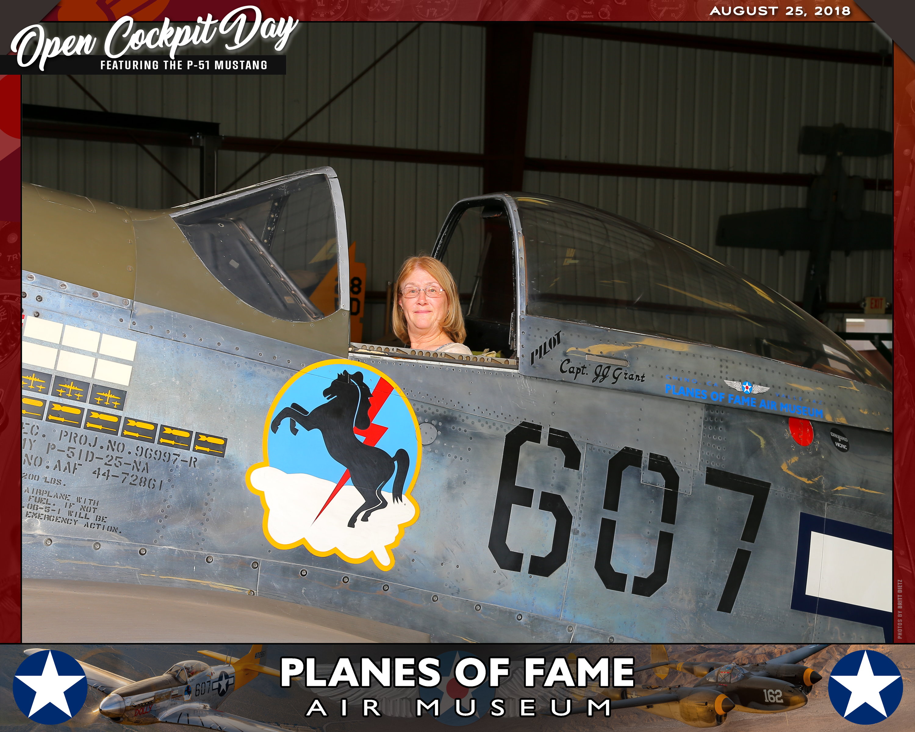 Thank you for joining us on August 25, 2018 for our Open Cockpit Day - Special Event for Silver, Gold, Platinum, and Lifetime Members to sit in the Cockpit of a P-51 Mustang! We appreciate you coming out to the Planes of Fame Air Museum and spending part of your day with us!
