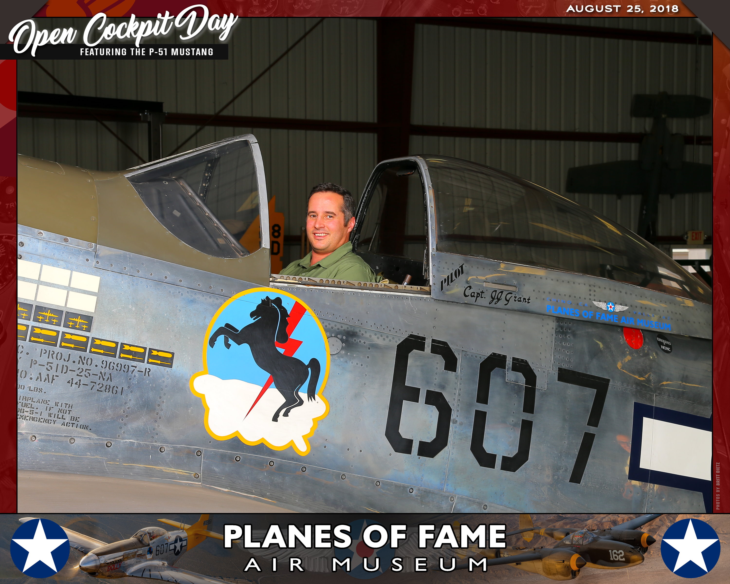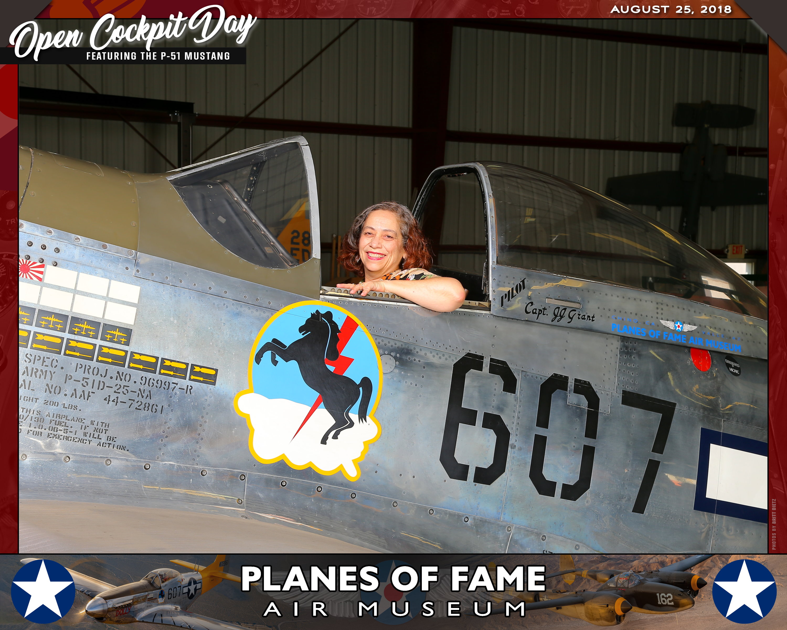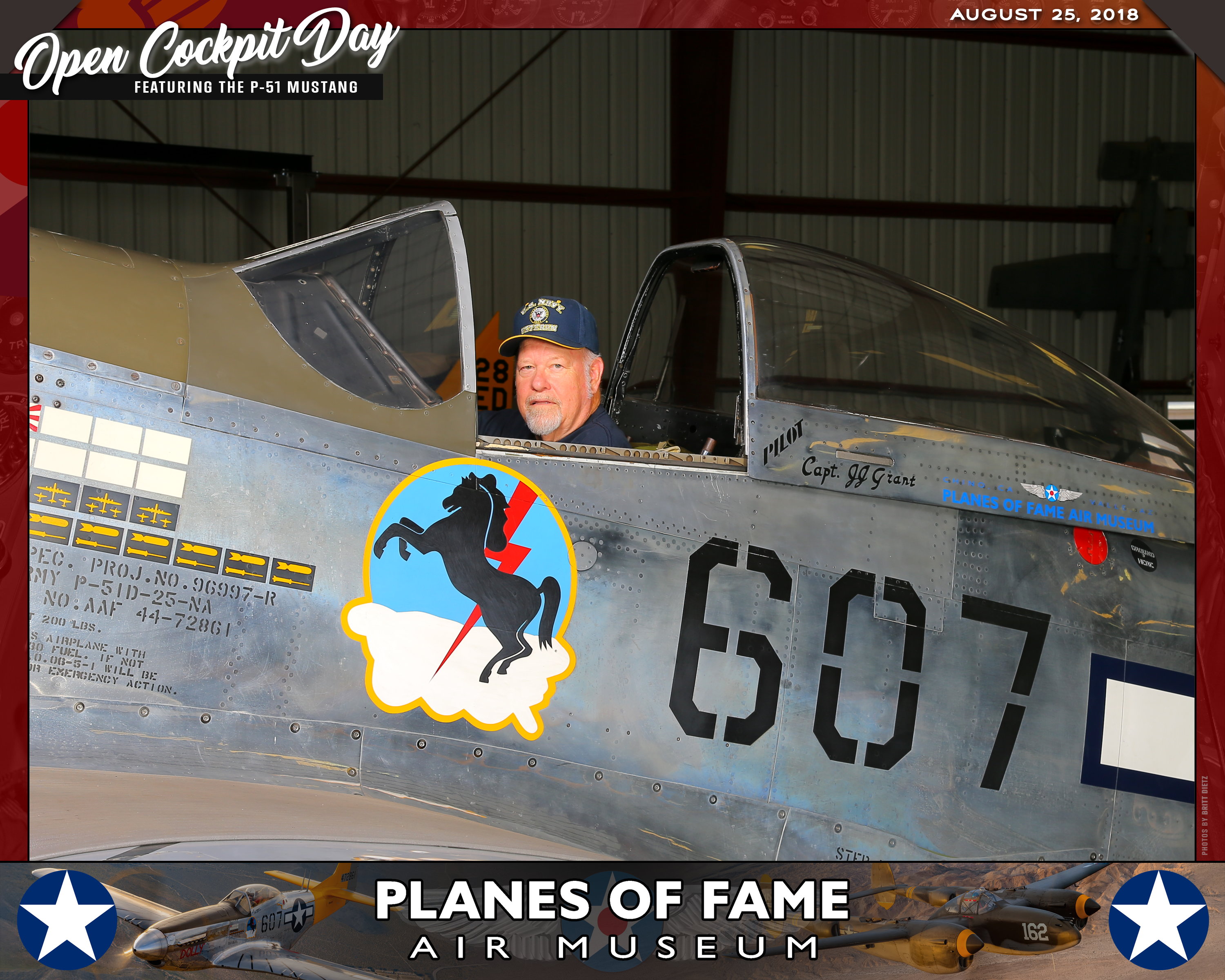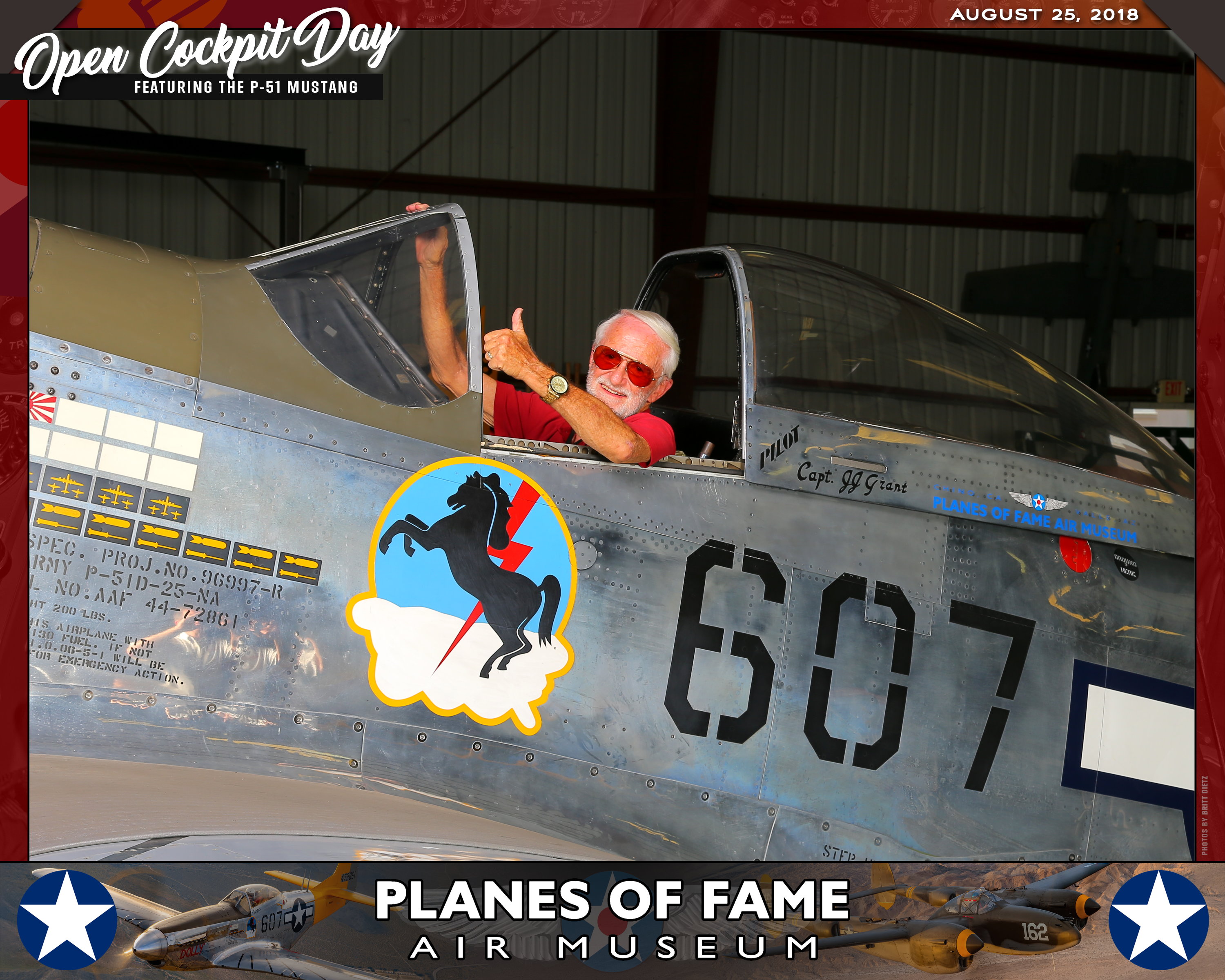 Thank you for joining us on August 25, 2018 for our Open Cockpit Day - Special Event for Silver, Gold, Platinum, and Lifetime Members to sit in the Cockpit of a P-51 Mustang! We appreciate you coming out to the Planes of Fame Air Museum and spending part of your day with us!