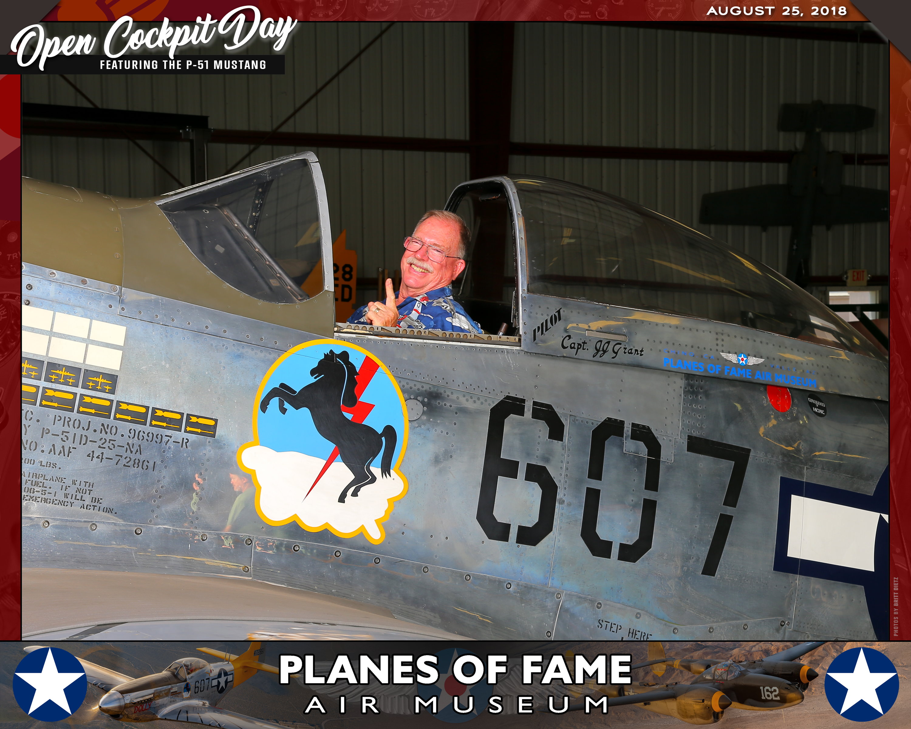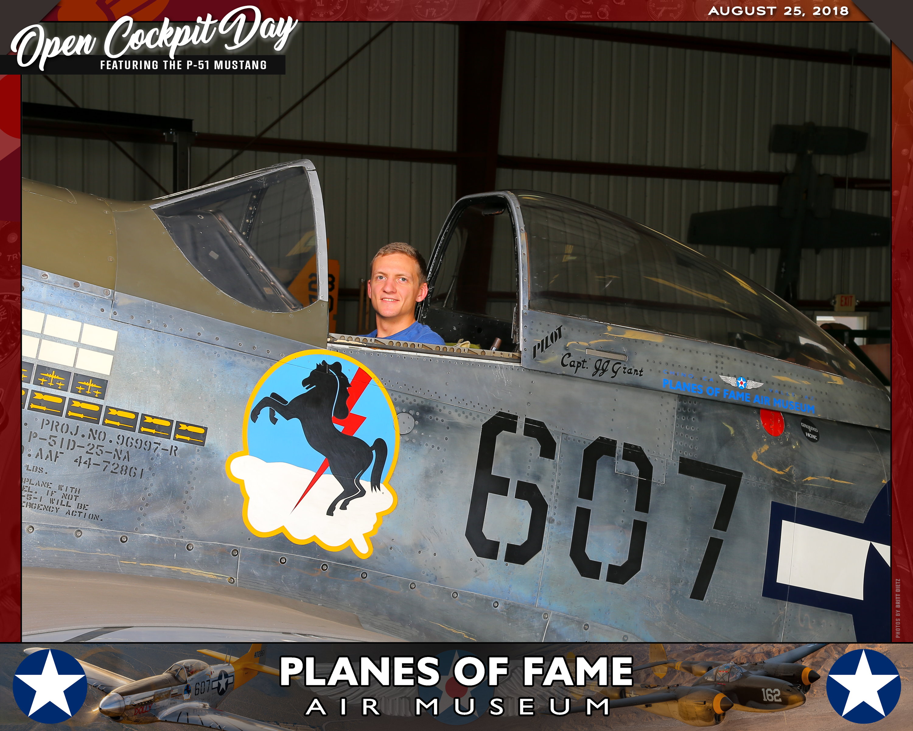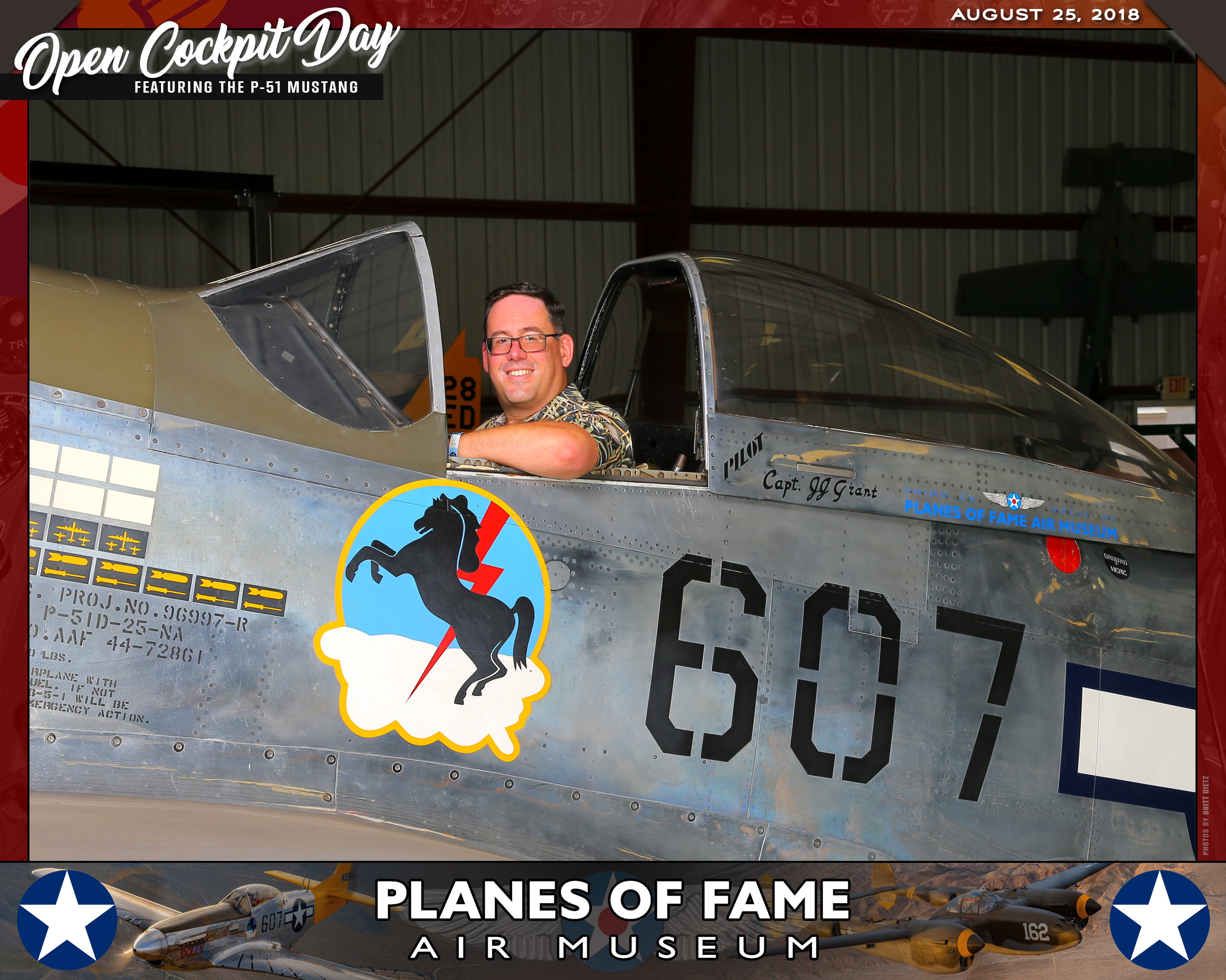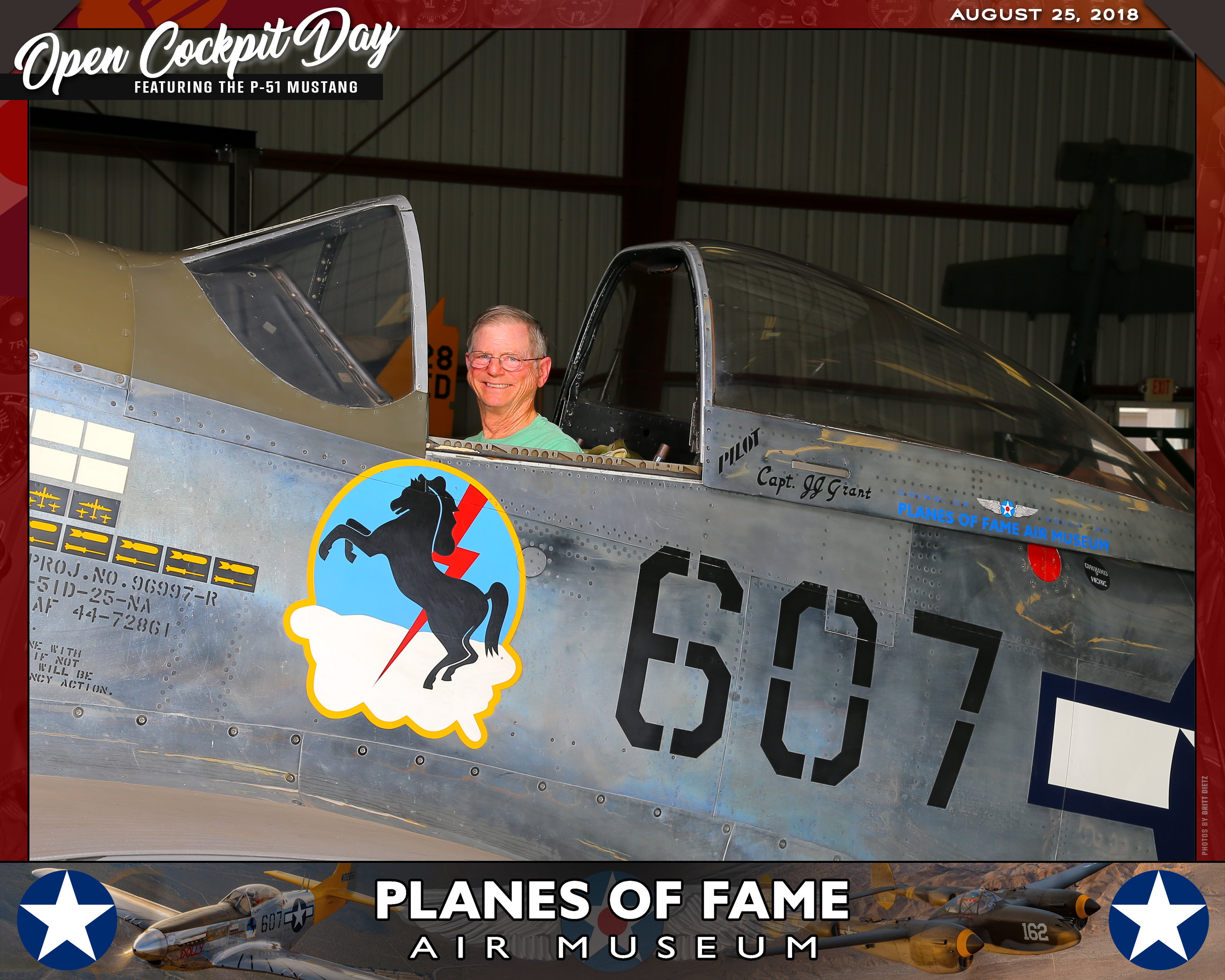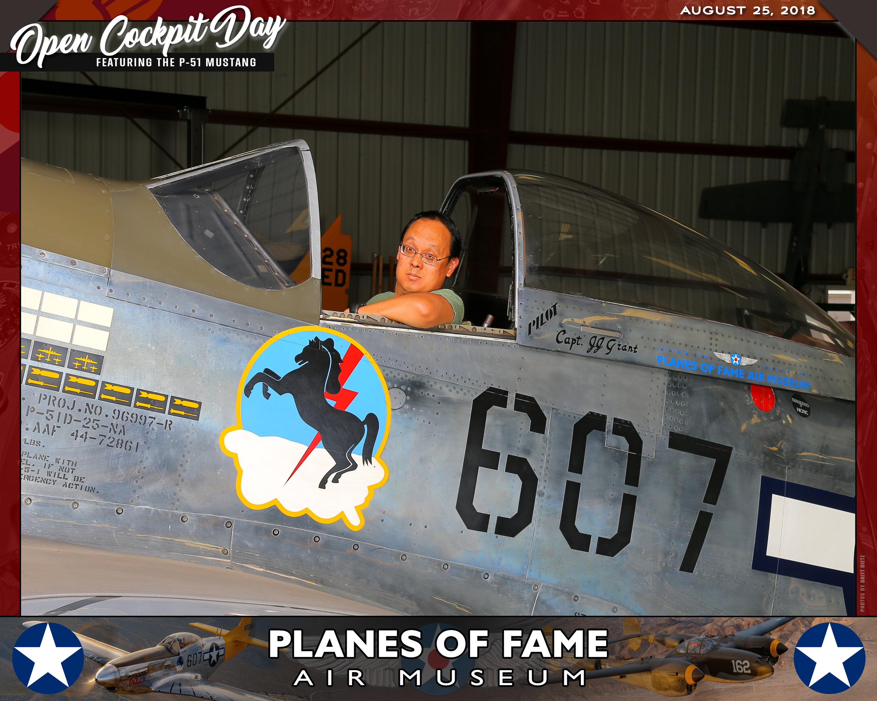 Thank you for joining us on August 25, 2018 for our Open Cockpit Day - Special Event for Silver, Gold, Platinum, and Lifetime Members to sit in the Cockpit of a P-51 Mustang! We appreciate you coming out to the Planes of Fame Air Museum and spending part of your day with us!