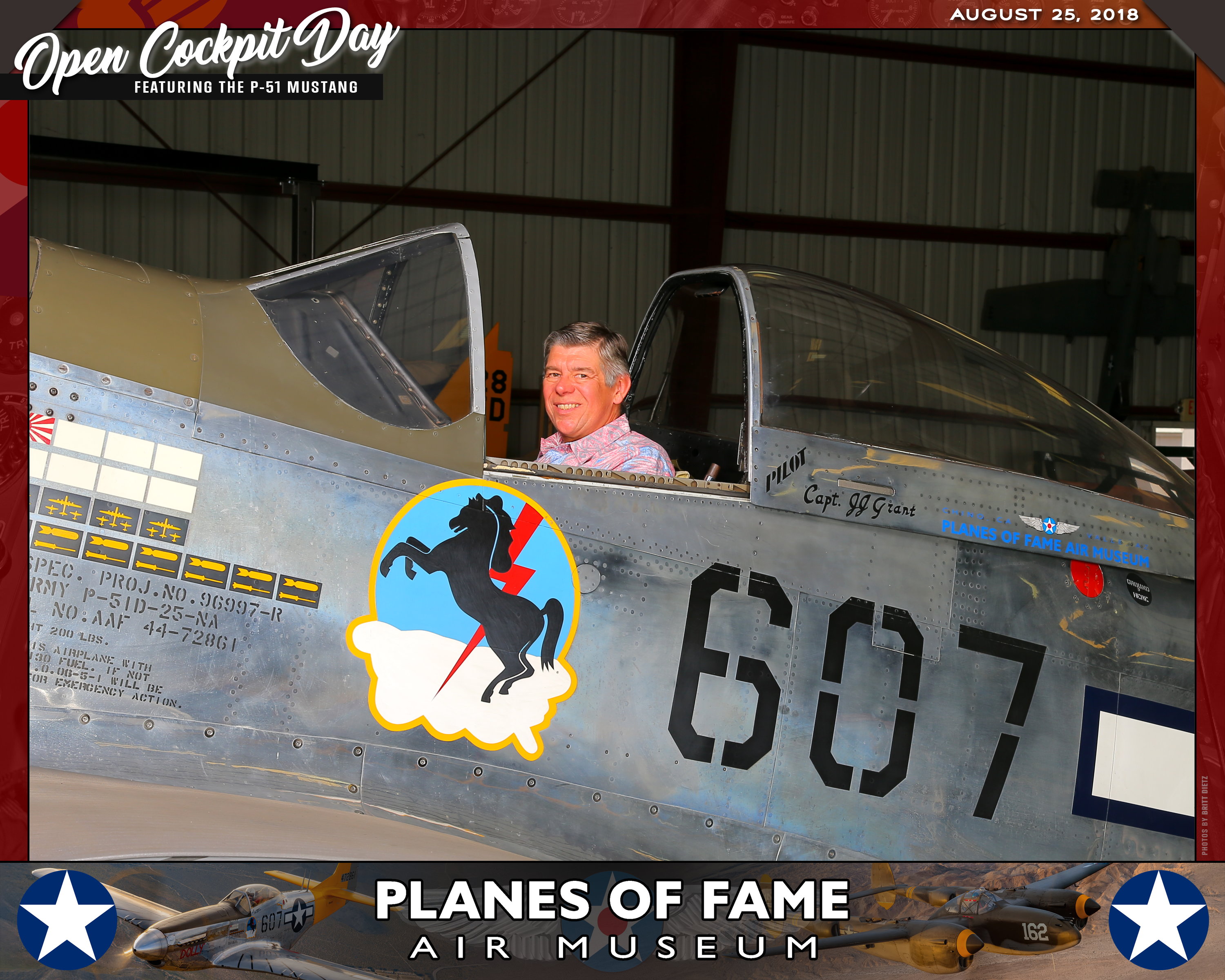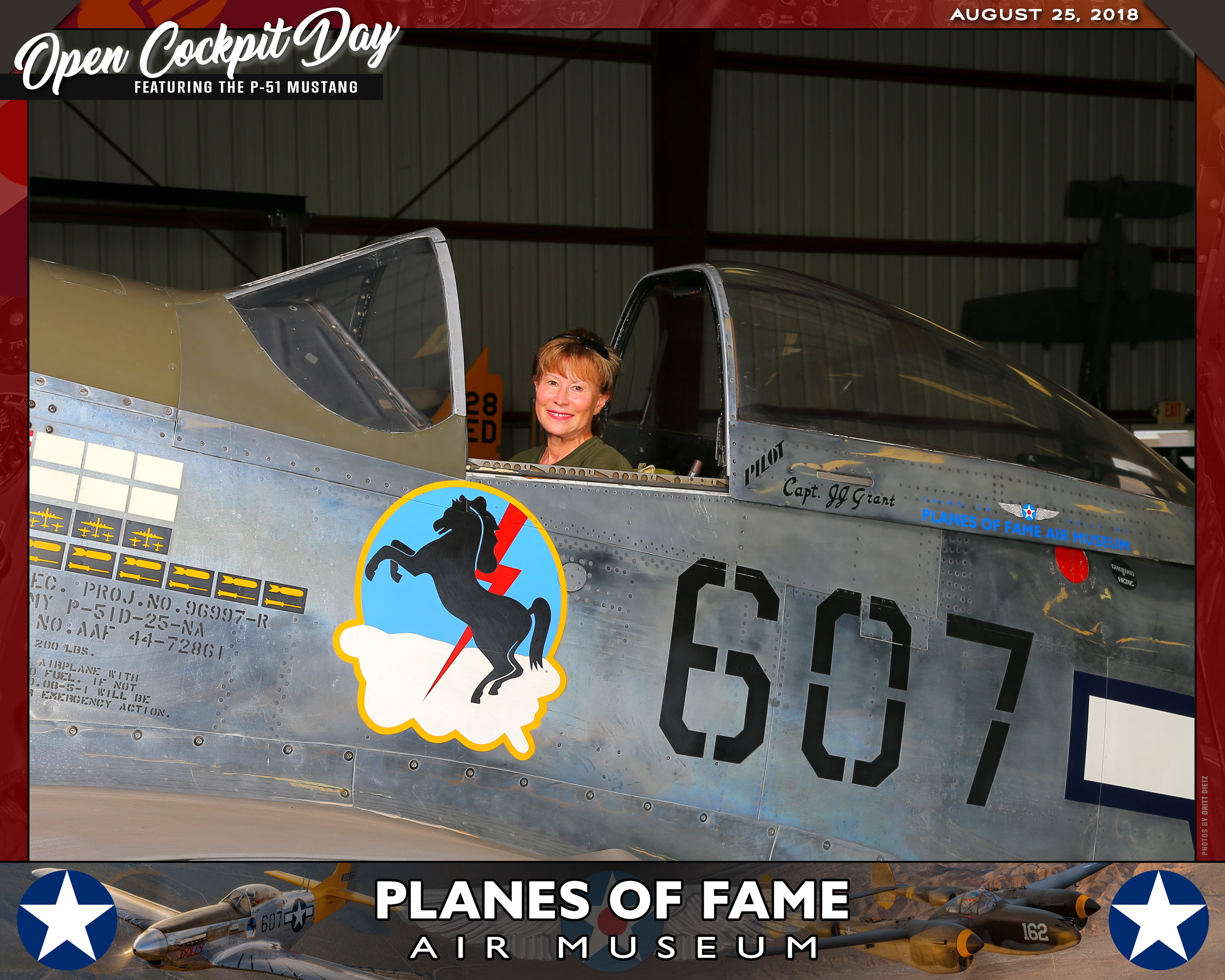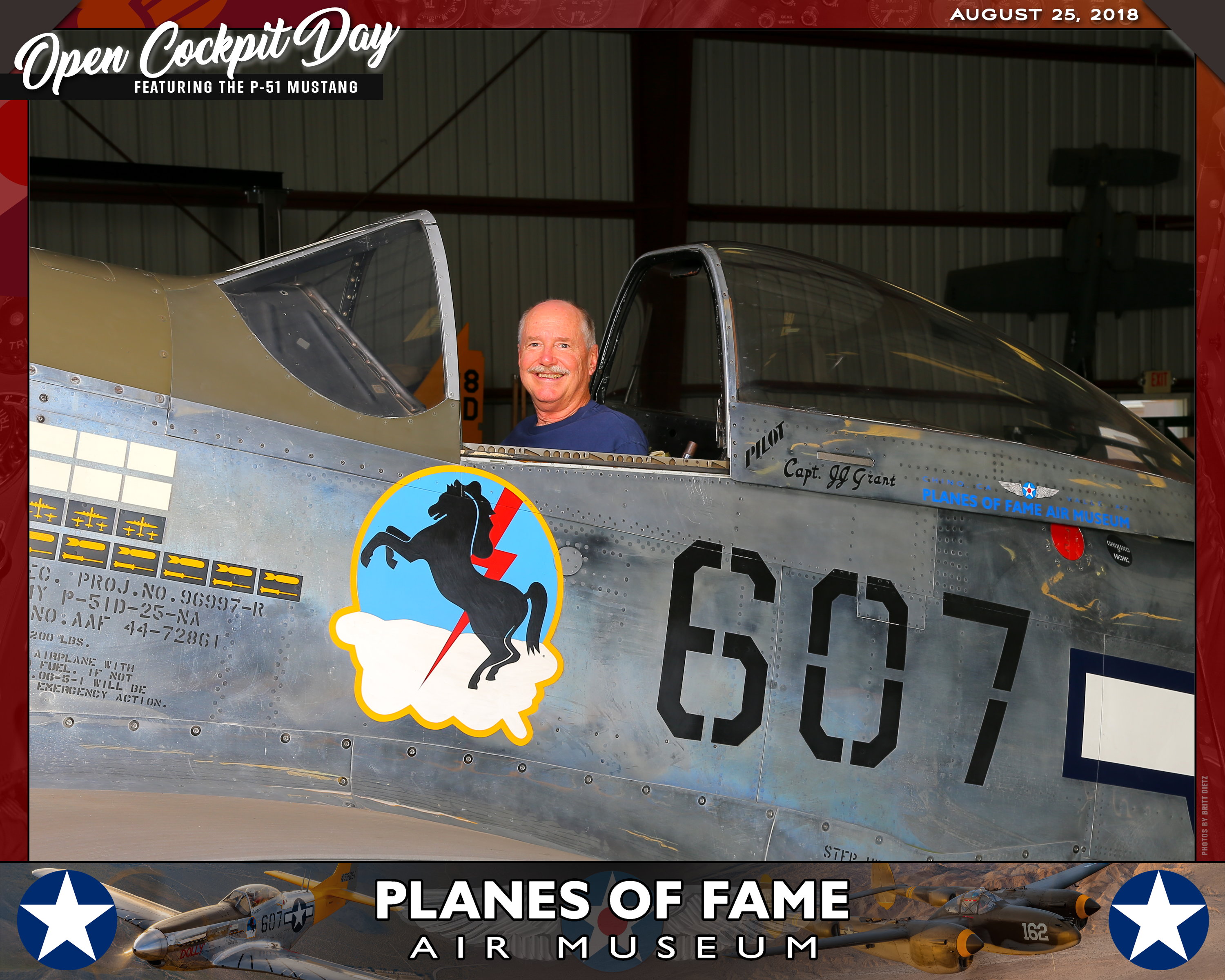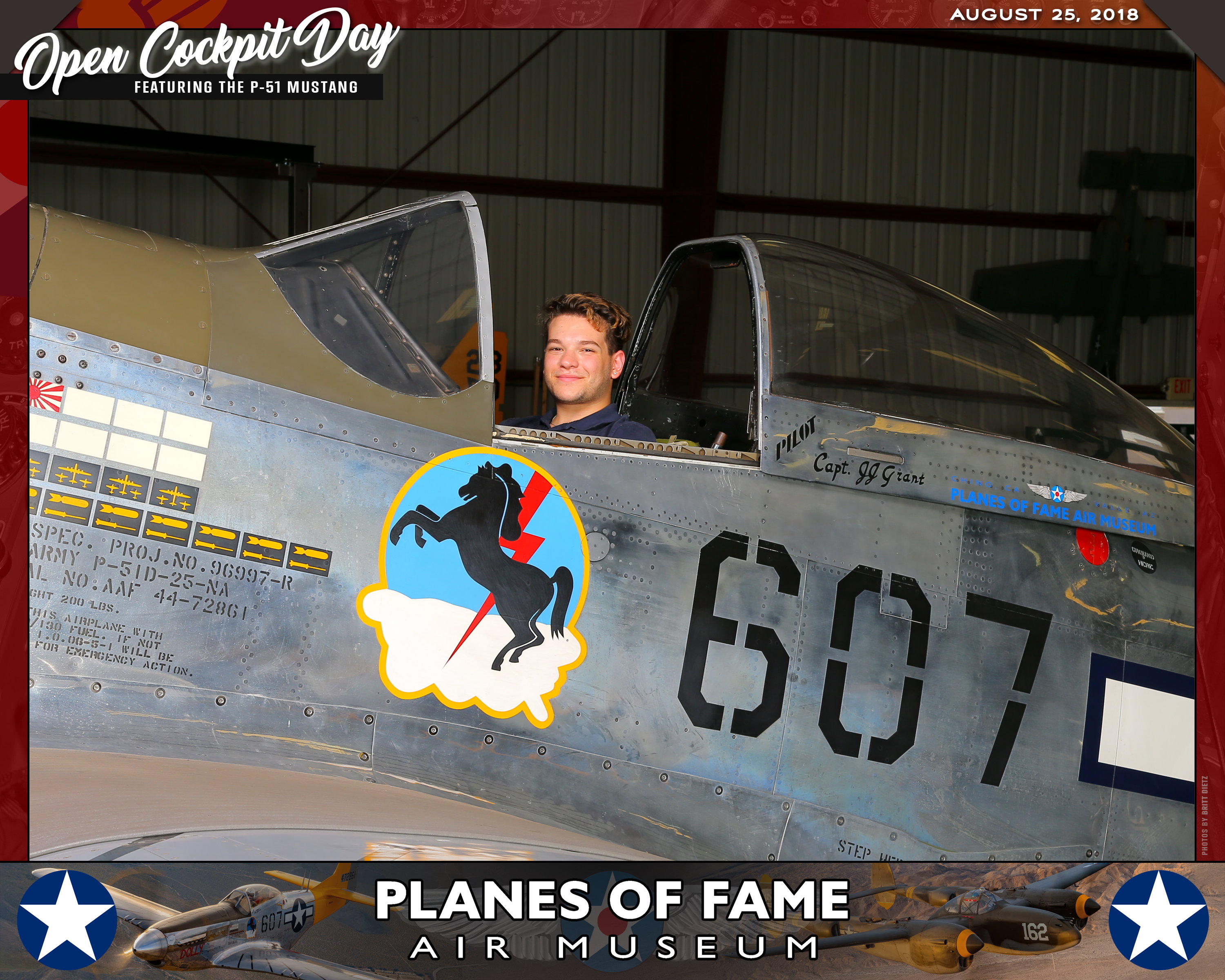 Thank you for joining us on August 25, 2018 for our Open Cockpit Day - Special Event for Silver, Gold, Platinum, and Lifetime Members to sit in the Cockpit of a P-51 Mustang! We appreciate you coming out to the Planes of Fame Air Museum and spending part of your day with us!