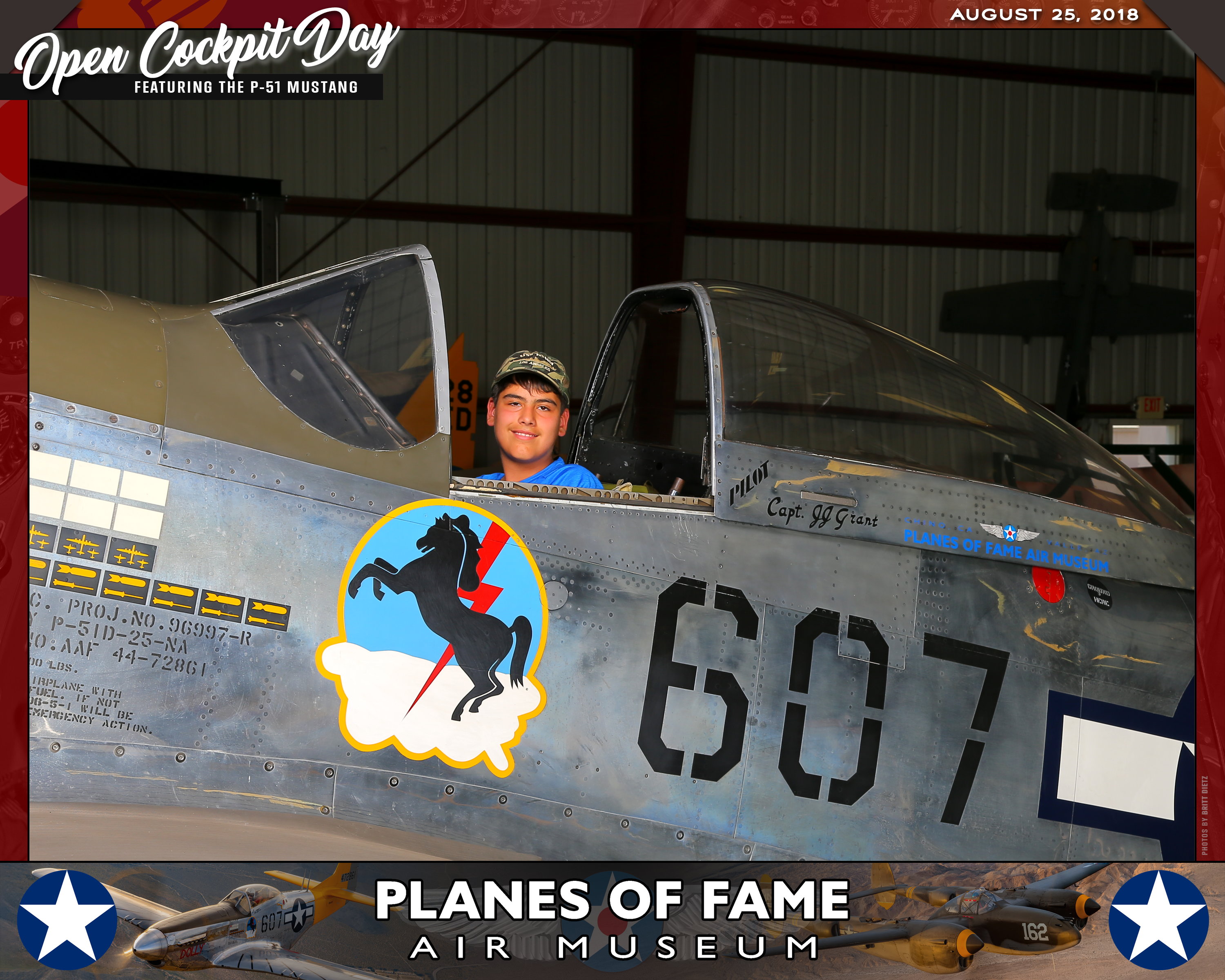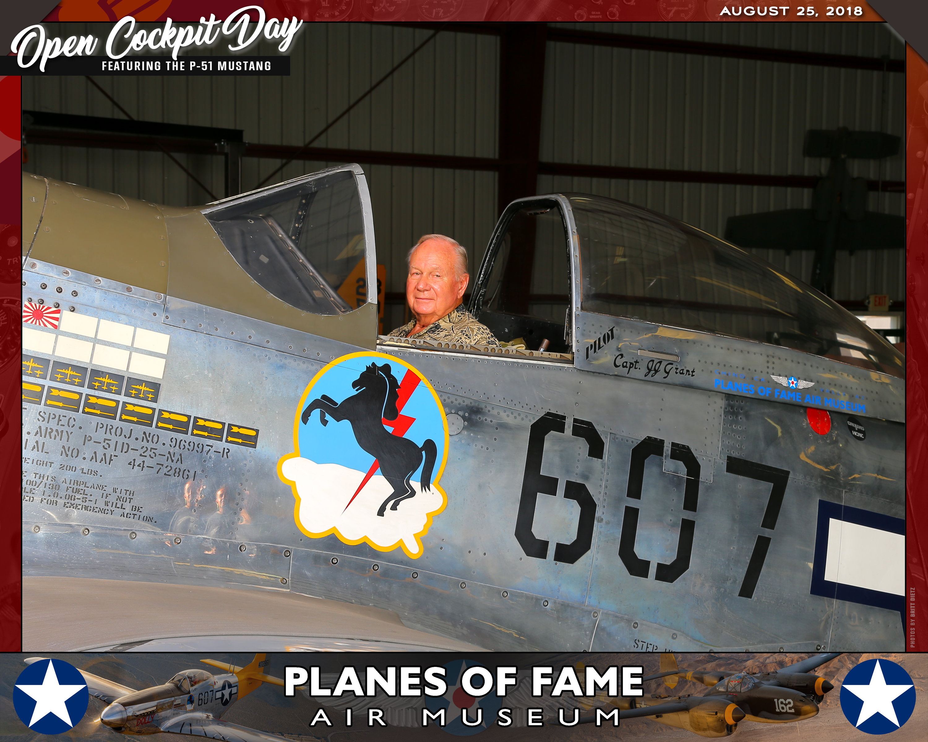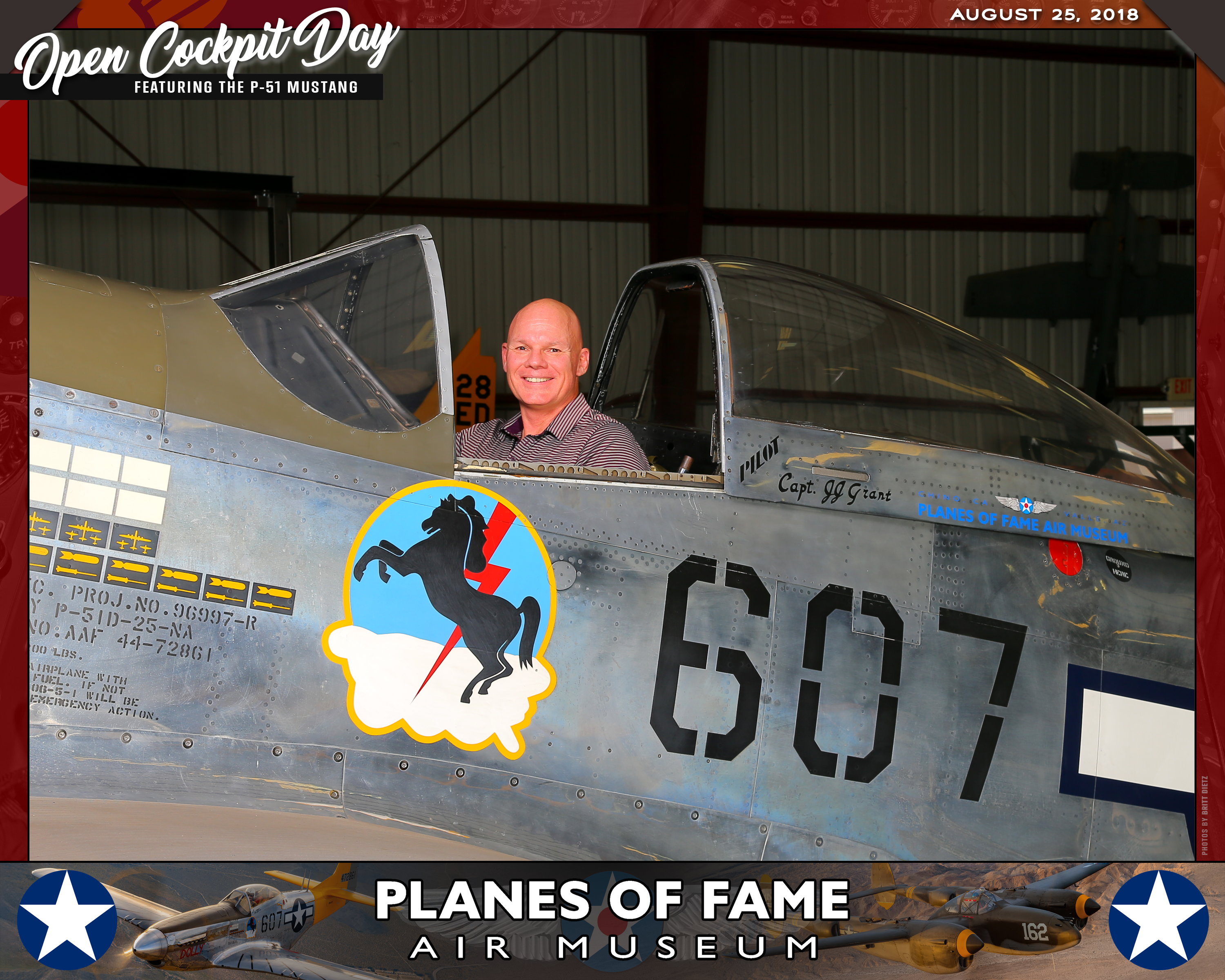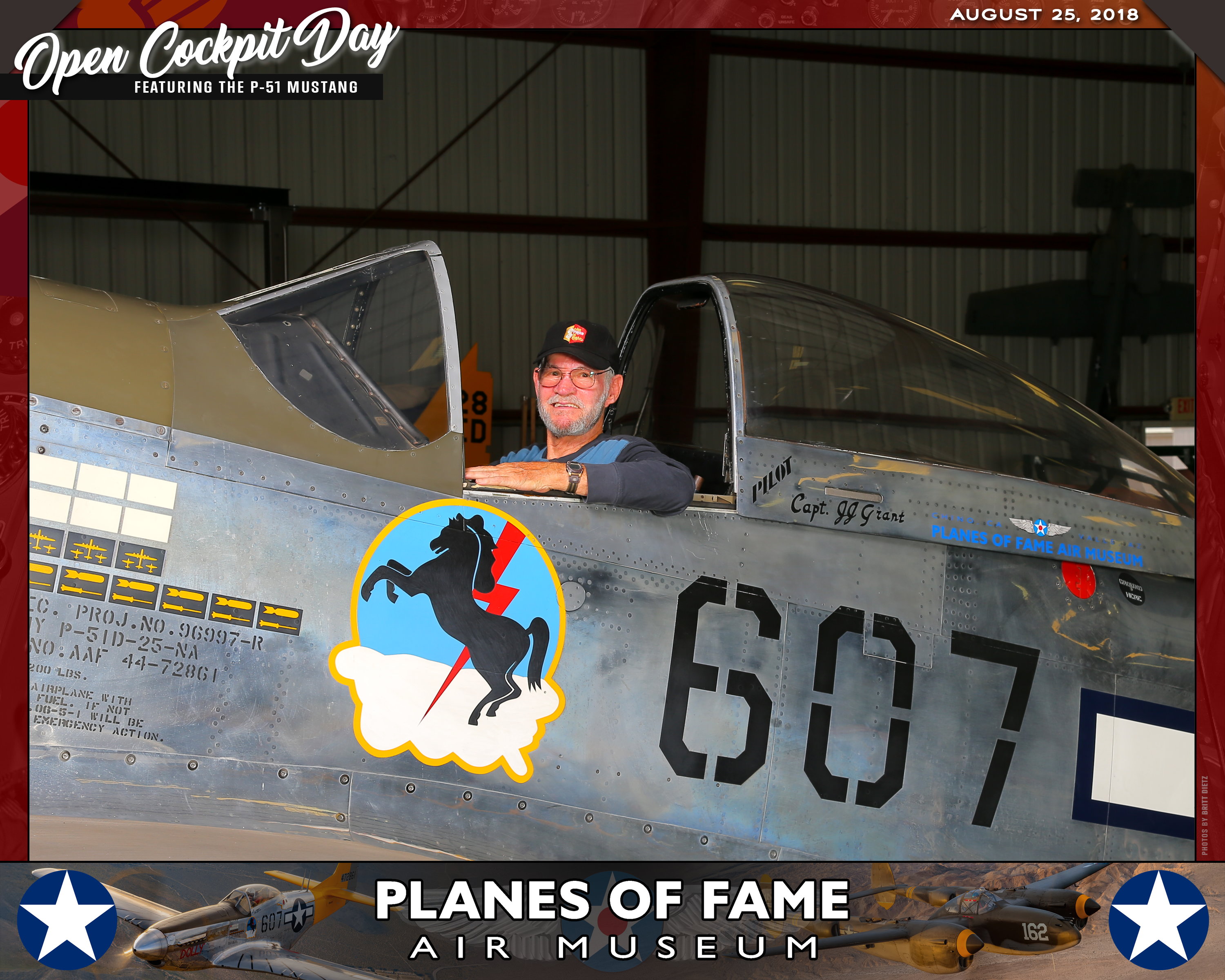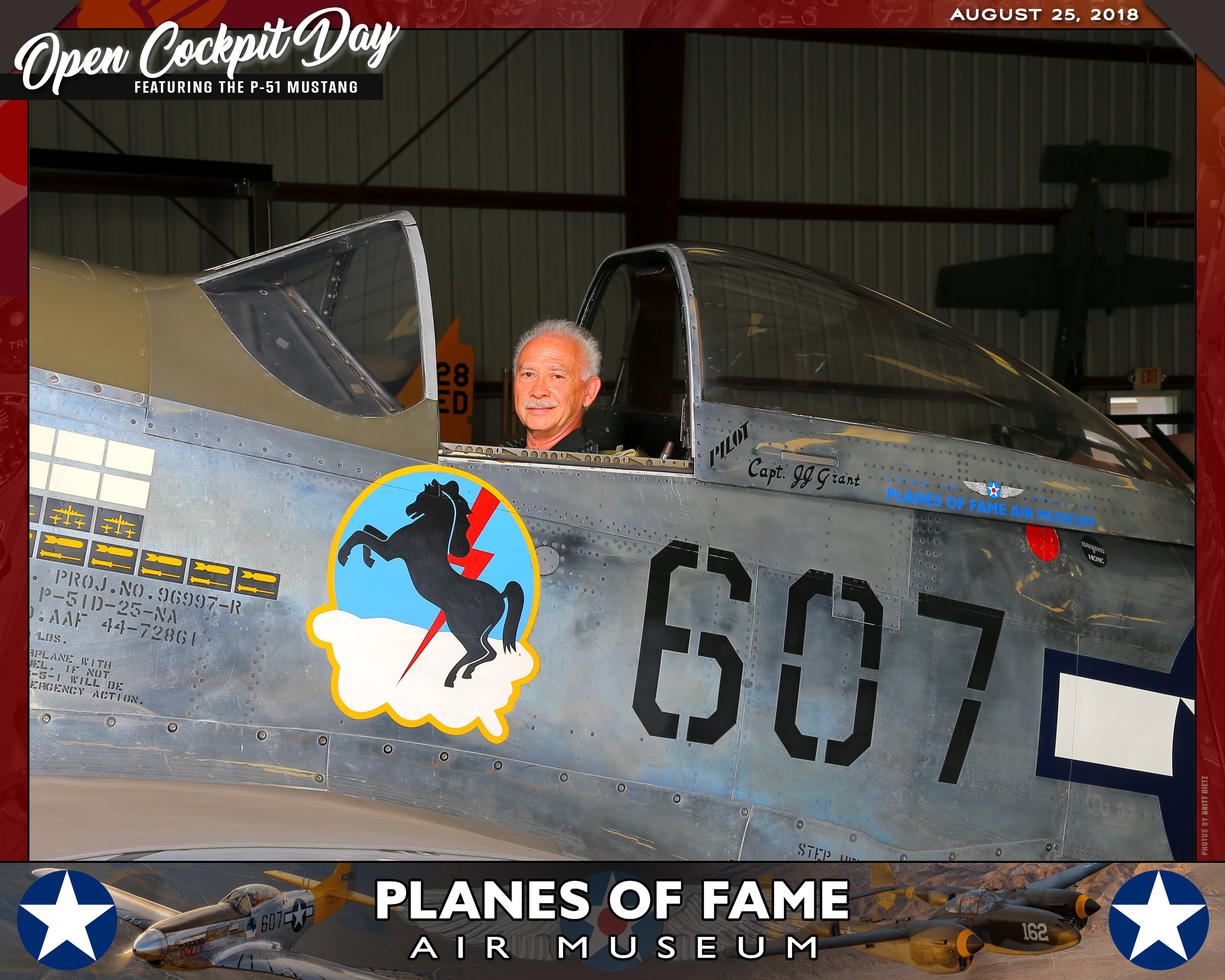 Thank you for joining us on August 25, 2018 for our Open Cockpit Day - Special Event for Silver, Gold, Platinum, and Lifetime Members to sit in the Cockpit of a P-51 Mustang! We appreciate you coming out to the Planes of Fame Air Museum and spending part of your day with us!